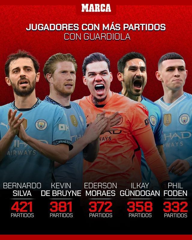 北京時間11月10日,曼城將在主場迎戰英超第11輪的對手利物浦。屆時瓜迪奧拉將達成執教1000場比賽的裡程碑。在過去的999場比賽,瓜迪奧拉麾下球員中,B席的出場次數最多,達421場。德佈勞內在瓜帥麾下出場第二多,共381場。