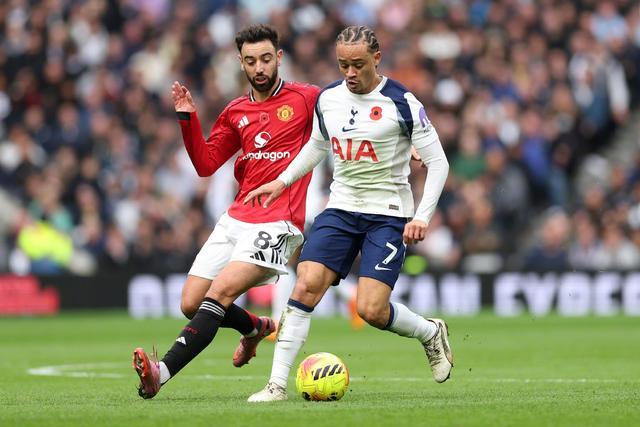 英超第11輪的一場較量中,曼聯在上半場結束後暫時客場1-0領先托特納姆熱刺。