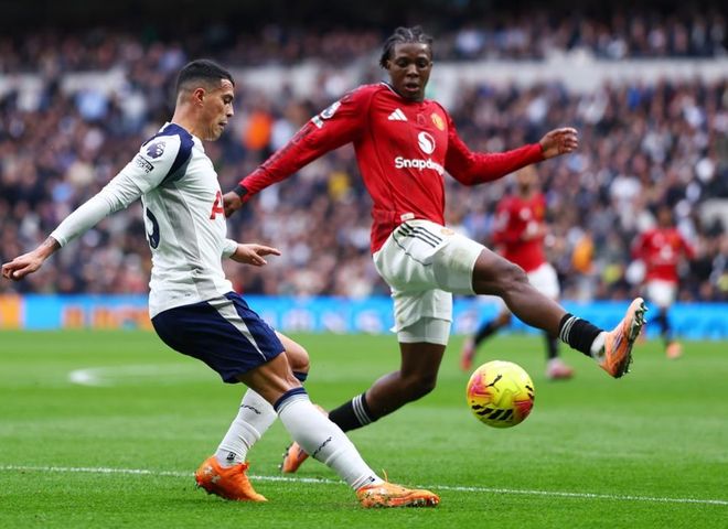 第32分鐘,熱刺丟球瞭。阿馬德在右側起球傳中,姆伯莫在後點頭球攻門,皮球鉆入球門近點。曼聯取得領先。隨後,羅梅羅犯規被出示黃牌。半場結束,熱刺0-1落後。熱刺上半場控球率54%,3次射門都沒有射正。曼聯上半場也是3次射門,但抓住瞭1次機會完成進球。