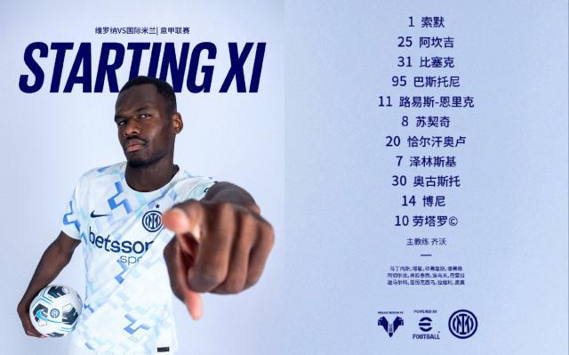 國際米蘭陣容:佐默/阿坎吉、比塞克、巴斯托尼/路易斯·恩裡克、蘇契奇、恰爾汗奧盧、澤林斯基、奧古斯托/博尼、勞塔羅