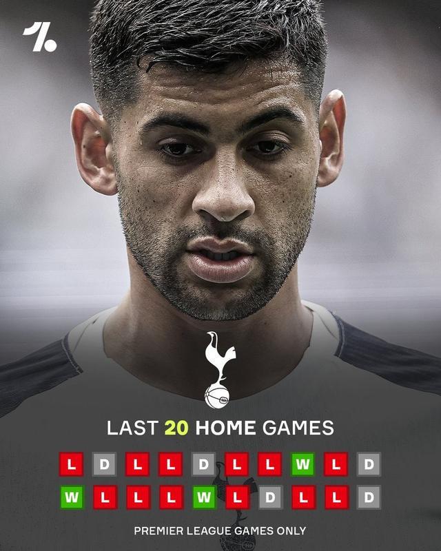 英超第11輪,熱刺主場2-2戰(zhàn)平曼聯,至此,熱刺最近20場英超隻取得3場勝利。