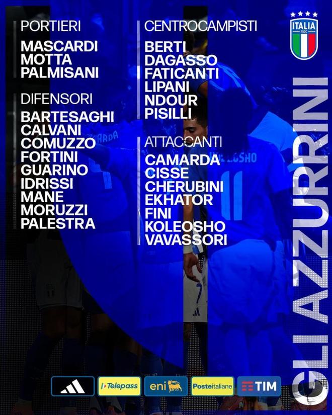 意大利U21名單公佈,巴特薩基、皮西利、卡馬達、科萊奧肖在列,本月意大利U21將在U21歐洲杯預選賽對陣波蘭U21、黑山U21。