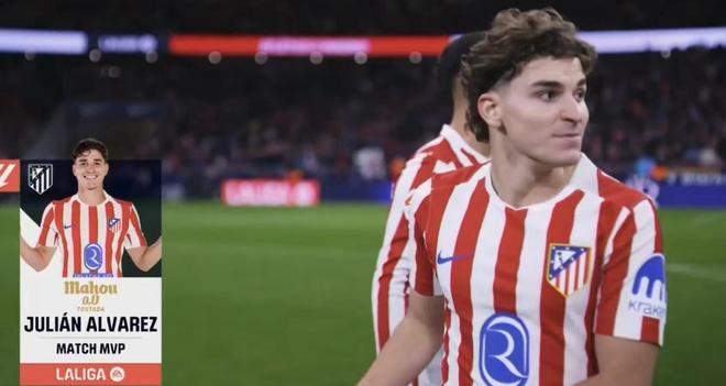 西甲第12輪,馬德里競(jìng)技主場(chǎng)3-1擊敗萊萬特,馬競(jìng)前鋒阿爾瓦雷斯當(dāng)選西甲官方全場(chǎng)最佳球員。