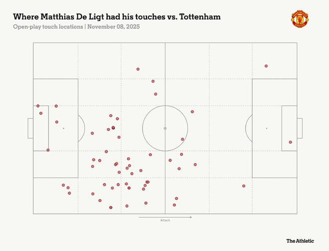 他的觸球點分佈圖顯示瞭一名覆蓋范圍極廣的球員,這使他作為阿莫林陣容中本賽季英超唯一打滿990分鐘(比佈魯諾-費爾南德斯還多8分鐘)的球員記錄更加引人註目。