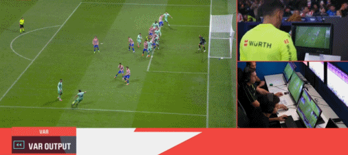 第90+3分鐘,卡洛斯-阿爾瓦雷斯破門,但隊友越位干擾,進球無效