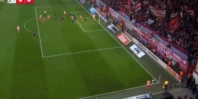 第9分鐘,柏林聯合左側角球機會,球罰向禁區,後點奎菲爾德接到隊友頭球擺渡,再將球頂向門前,安薩頭球接力破門。隨後VAR介入,經過劃線判定,主裁判認為安薩越位,進球無效。賽後,柏林聯主帥鮑姆加特向記者抱怨:“第一個球應該算作進球。僅僅因為5毫米的差距就判越位——我們這裡談及的真的是5毫米——有些人簡直是瘋瞭。”
