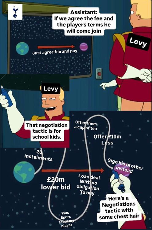 熱刺從興建價值十億英鎊的新球場之時先後以向銀行和投行借貸、發放債券的形式籌集瞭10.5億歐元(86.69億人民幣)資金。熱刺敢於放手一搏,不隻是因為那一套青春風暴的歐冠亞軍班底,更是因為2018-2019賽季前連年的盈利數據。而後來的情況卻急轉直下,球隊連續五年持續虧損。隨著英超爭六爭四格局變得愈發激烈,成績下滑會拖垮球隊的良性運轉,歐戰分成會下降,觀眾上座會減少,球衣銷售收入會損失。更何況球隊還要承擔一次次換帥的違約金和翻新陣容的沉默成本。而這會一次次地暴露列維的缺點,即在出售那些非核心球員時,列維的拖延戰術並不奏效,隻會讓球員在合同最後階段被低價賣出。