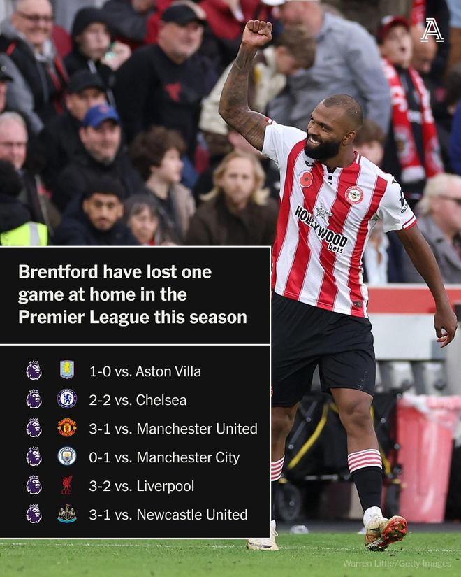 賽後根據統計,雖然佈倫特福德本賽季客場成績不佳(1勝4負),但他們在主場已經先後斬落瞭阿斯頓維拉、曼聯、利物浦以及紐卡斯爾聯,此外他們還戰平瞭切爾西,期間他們在主場唯一的一場敗仗是10月5日0-1不敵曼城。