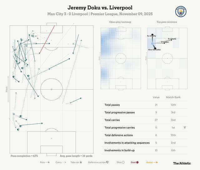 北京時間11月10日,英超第11輪,曼城3-0戰(zhàn)勝瞭利物浦,賽後,The Athletic發(fā)表專題文章,分析並點評瞭本場比賽,以下為專題文章。