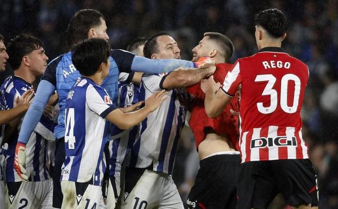 在巴爾韋德隔空喊話的同時,桑切特沖上去推倒了阿蘭布魯,導致兩隊球員爆發沖突。之后,維維安勸開阿蘭布魯,奧亞薩瓦爾勸開桑切特,避免了事態升級。