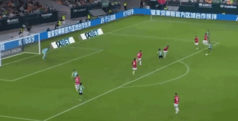 第34分鐘,貝萊林送出橫敲,安東尼在弧頂先是輕輕一扣,隨即左腳兜射遠角,皮球劃出完美弧線,直奔死角,又是一記世界波,將比分擴大到了2-0,輕輕松松完成梅開二度。