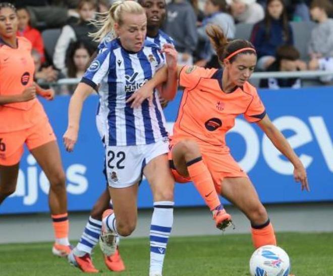 面對皇家社會女足擺出的四后衛加五中場的緊湊雙層防線,巴薩女足在控球上占據優勢,但始終難以創造出有威脅的進攻空間,無法將控球轉化為有效得分機會。