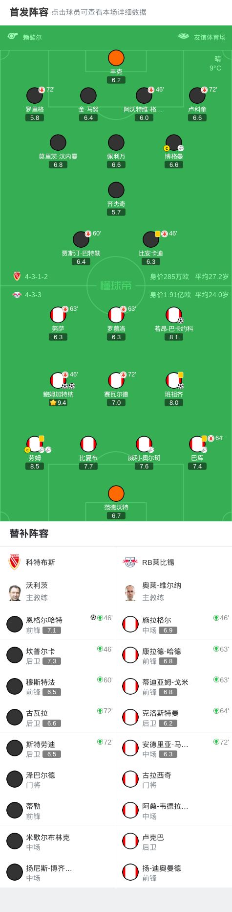 第28分鐘,勞姆角球開出,鮑姆加特納頭球破門,萊比錫2-0科特布斯