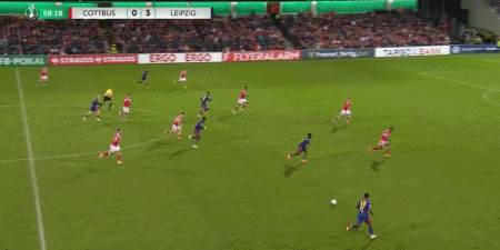 第13分鐘,巴卡約科右路內切破門,萊比錫1-0科特布斯